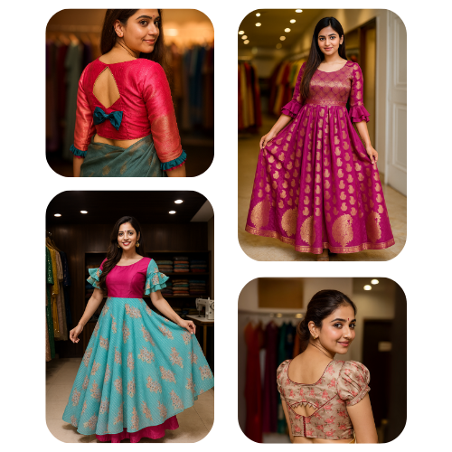 We stitch blouses, lehengas, anarkalis, gowns, kurtis, dresses, kidswear, and premium bridal outfits.